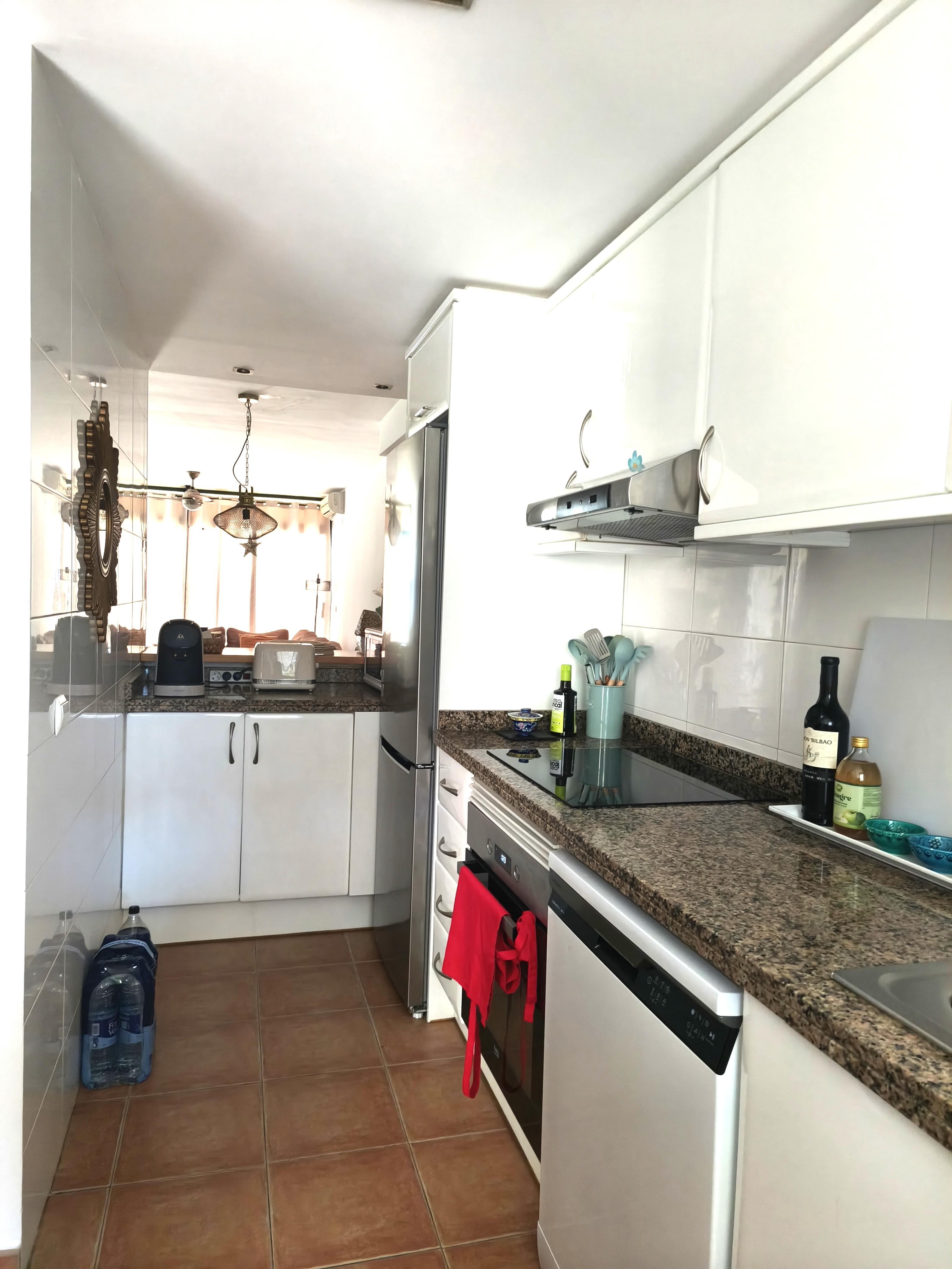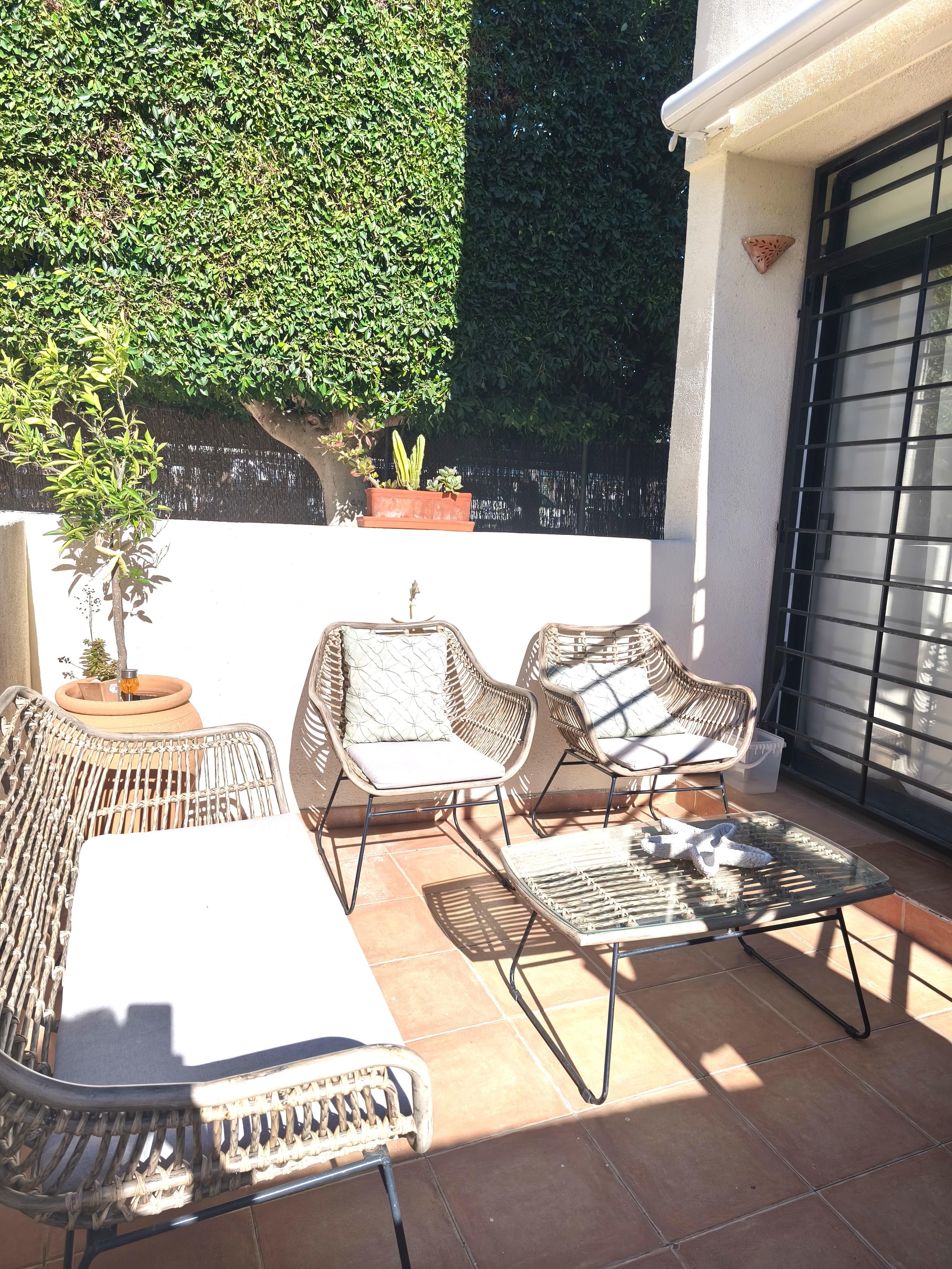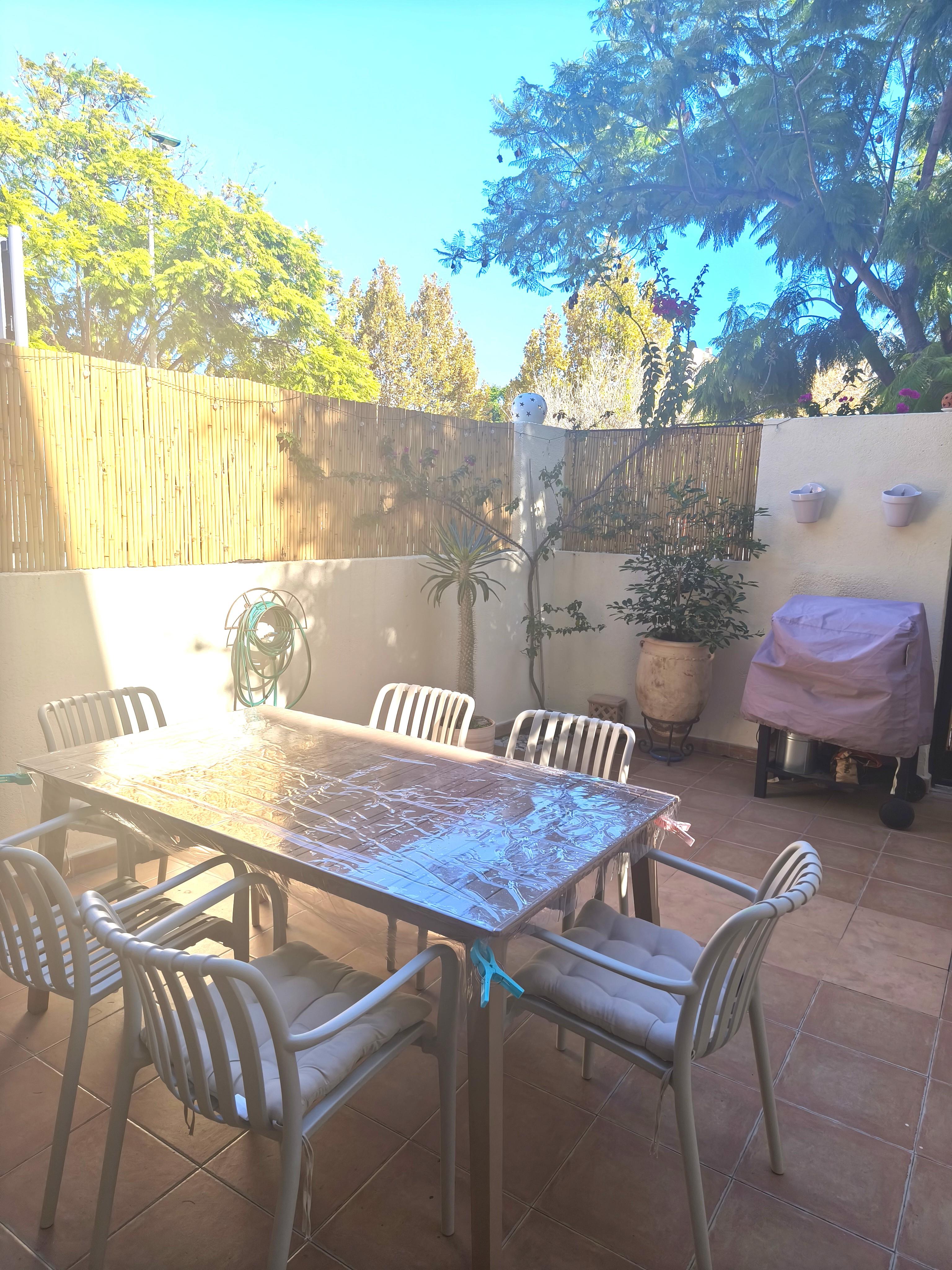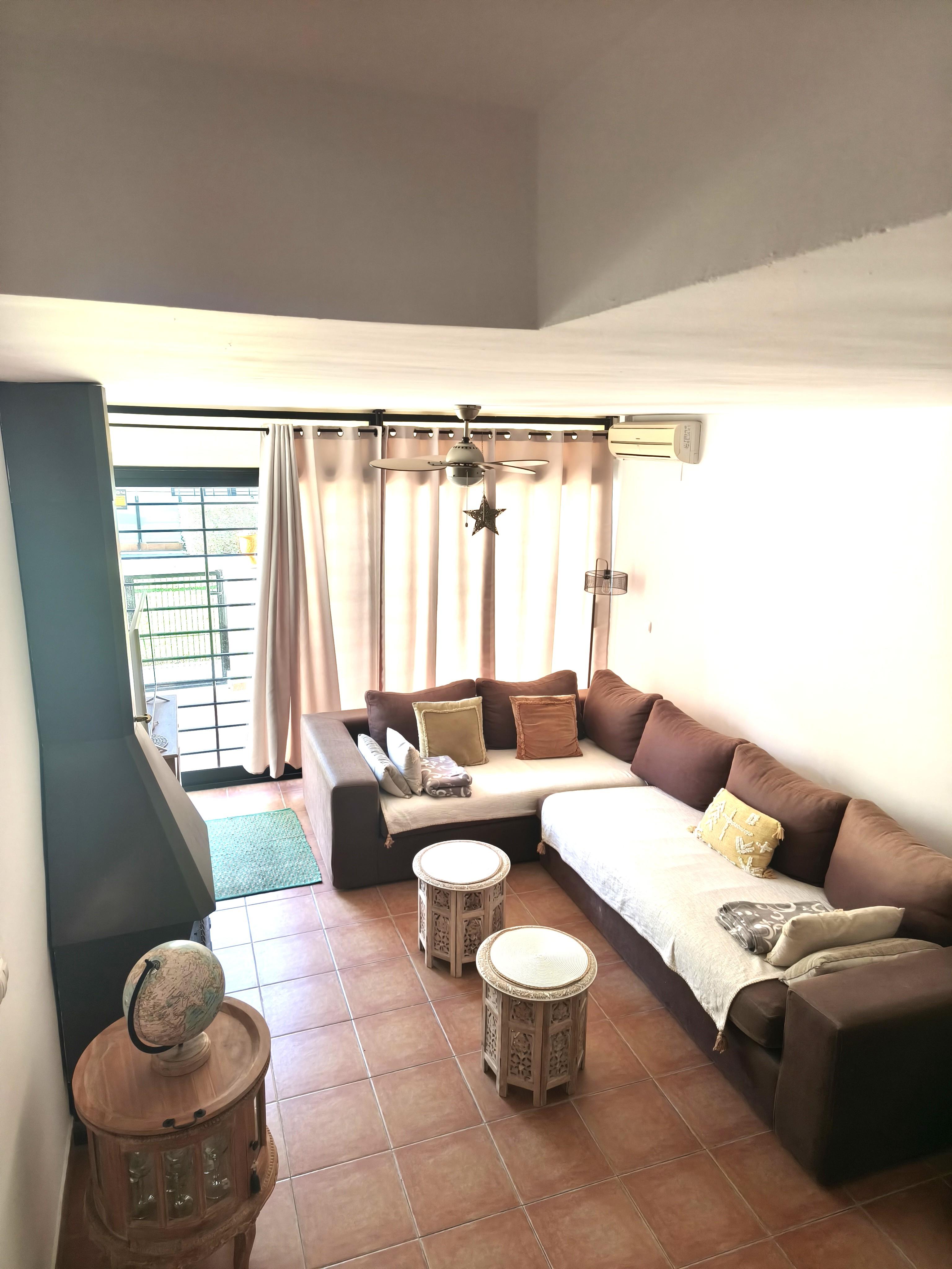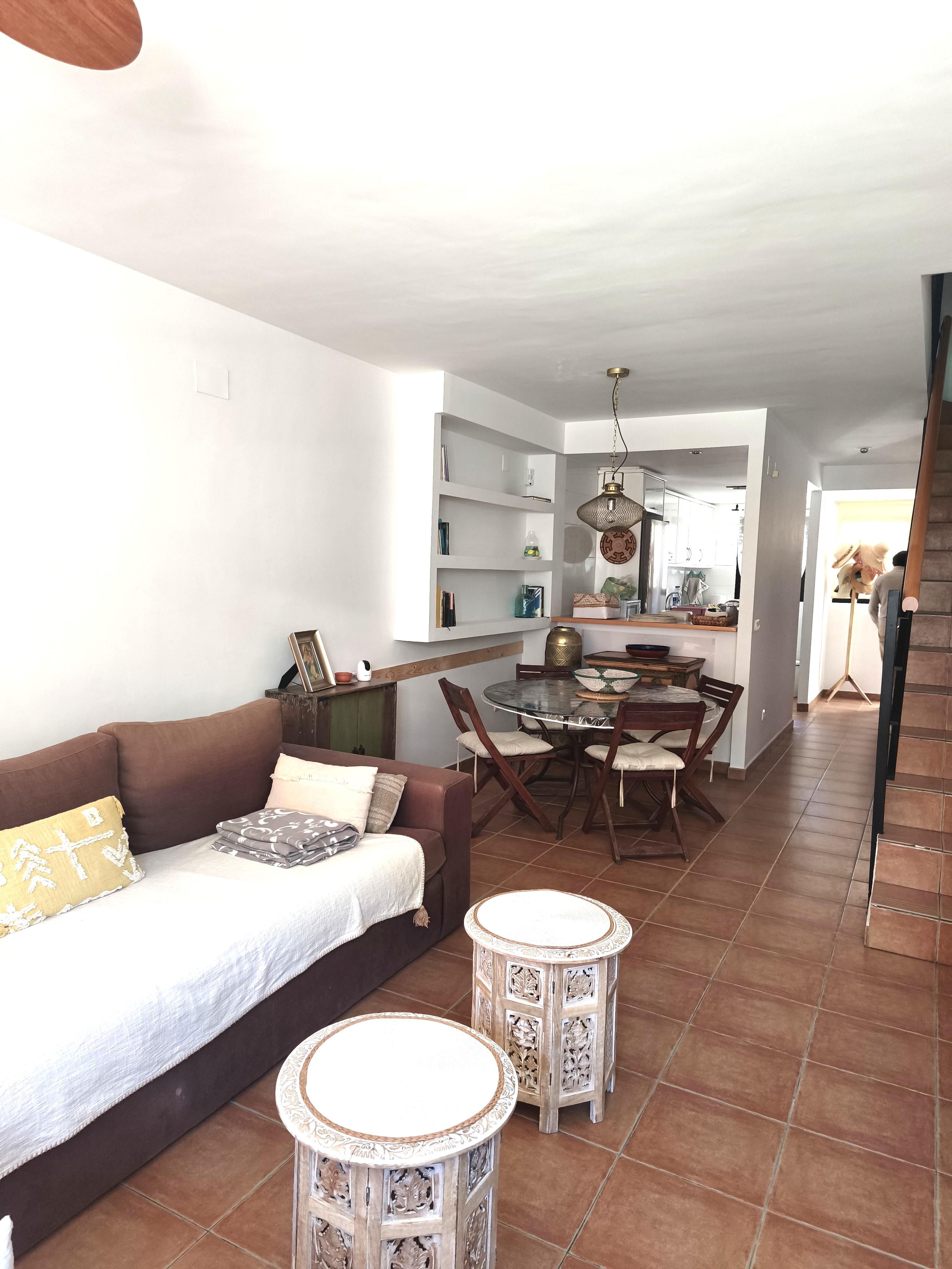 Estupendo adosado de tres plantas, situado en Avenida Augusta, a un paso de supermercados, playas y todo tipo de servicios. La vivienda consta de salón-comedor con chimenea, cocina abierta completamente equipada con electrodomésticos a estrenar, aseo de cortesía y dos terrazas en la planta baja. En la planta intermedia hay dos dormitorios dobles con armarios empotrados y terraza más un baño familiar. En el tercer piso está el dormitorio principal con baño y terraza. La vivienda está situada en comunidad con jardín y piscina y cuenta con plaza de parking y aire acondicionado frío y calor.